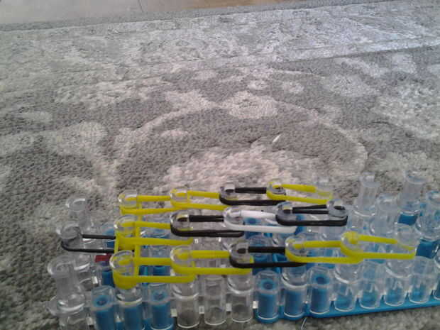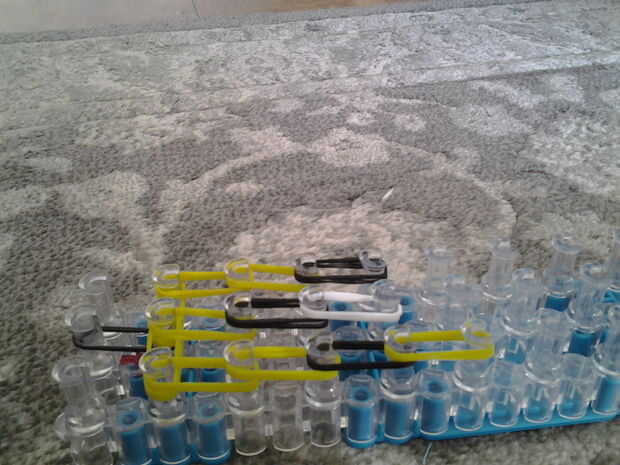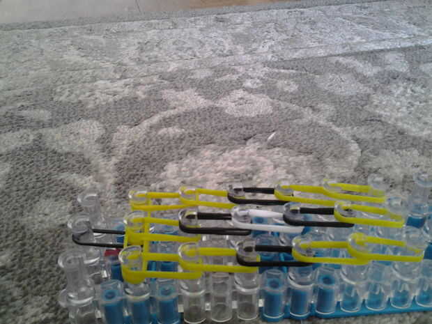 Paso 1: fuentes de Necesita un kit de inicio para el telar del arco iris y algunas elásticas.Paso 2: Colocar las bandas Iniciar colocando un color de borde y no empezar a poner encima de todo lo que tienes que hacer en los patrones.Paso 3: Colocar la