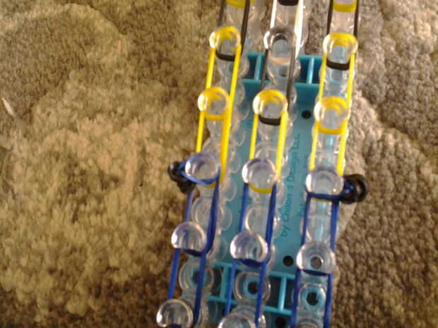 Paso 1: fuentes de Necesita un kit de inicio para el telar del arco iris y algunas elásticas.Paso 2: Colocar las bandas Iniciar colocando un color de borde y no empezar a poner encima de todo lo que tienes que hacer en los patrones.Paso 3: Colocar la