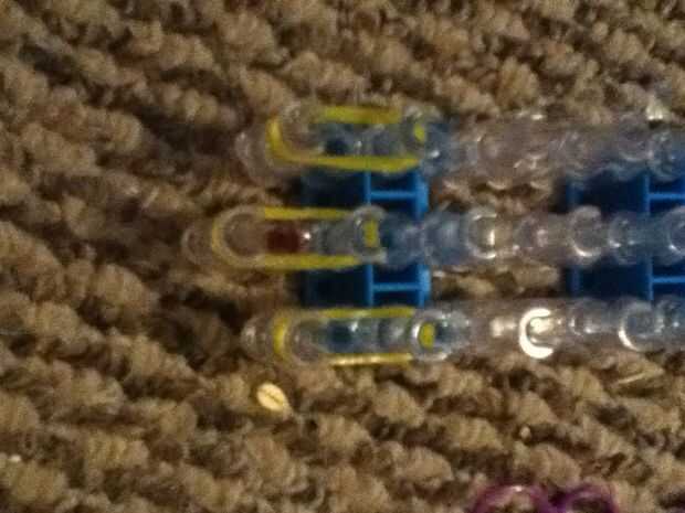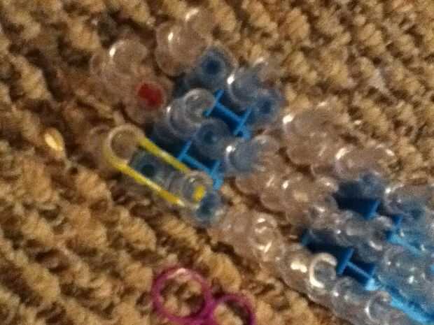 Asegúrese de que las flechas están frente a usted. Empezar en cualquier lado. Doble las bandas cuando pones uno. Sólo ponga tres en fila. En el centro colocar cinco (aún duplicación de la banda). En el otro lado colocó tres (el doble de lo). Luego con el otro color pone cinco filas en ambos lados, doblando. En el centro sólo añadir tres, duplicación.