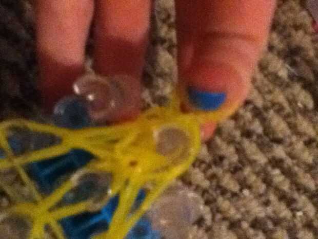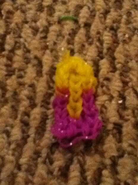 Llevar ambas partes a la mitad. Poner una banda amarilla en el medio. Poner un clip en ella y luego sacar.
