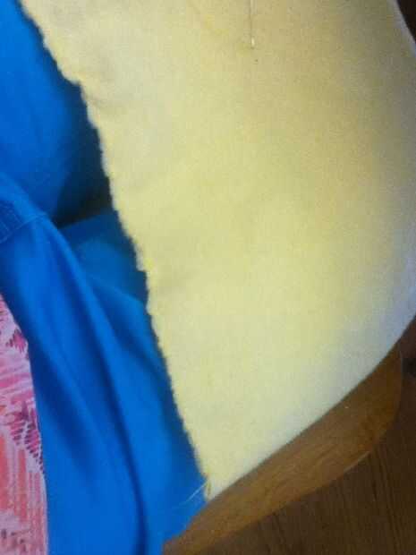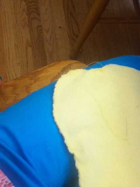 Tomar un trozo largo de tela amarilla y doblarlo y prepárate tus fuentes de costura y empezar desde abajo primero usted puede cortar los bordes para hacerlas incluso intentar ver curvas así como en forma de un óvalo, una vez que casi ha terminado las cosas con relleno hasta que sienta que es mullido bastante cuando listo con eso luego cose el resto de él y debe terminar con un óvalo de costura se almohada