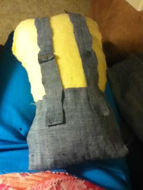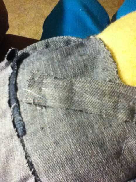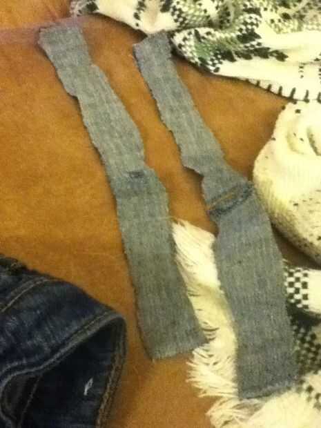 Take 2 piezas flacos de su jeans viejos y ellos con que desee y luego los botones en él la línea línea hasta hacer una X en la espalda y luego hacer el otro lado