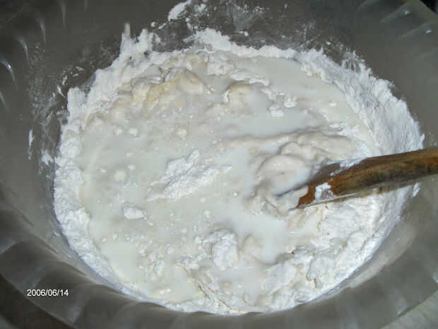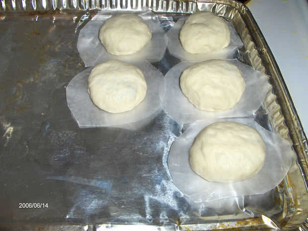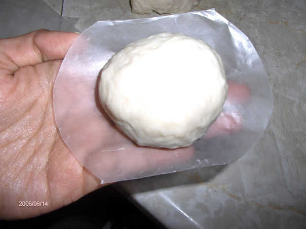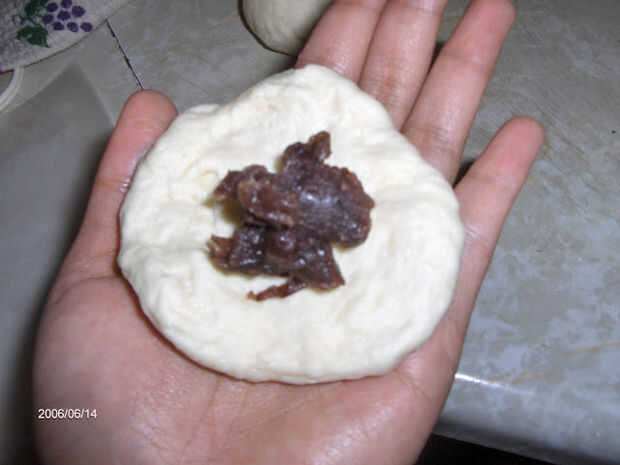 Golpear ligeramente levantado de la masa, dividir en bolas iguales. Aplanar con las manos o palote, colocar por lo menos una cucharada de relleno en el centro, para sellar la costura.