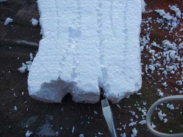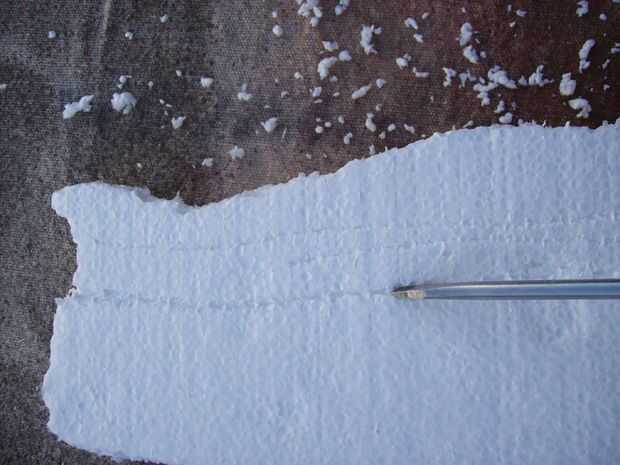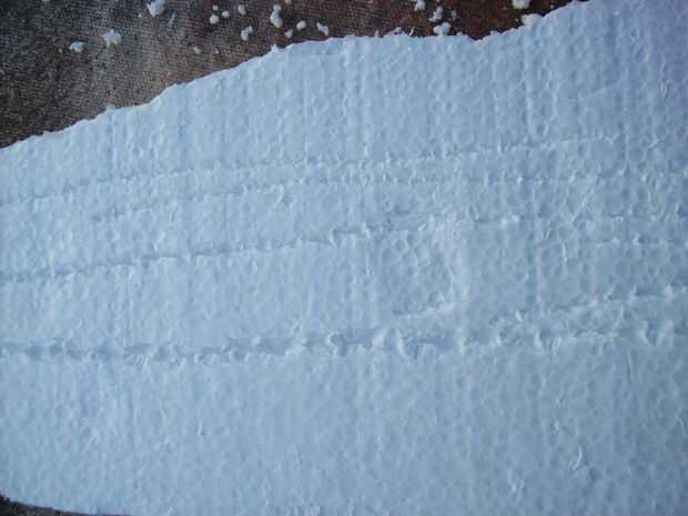 Luego, utilice un poco más de presión y arrastre el destornillador a través de la espuma. Esto hará que la madera ver podrido y quebradizas después se pinta. Probar diferentes técnicas. Usar el tablero de la espuma blanca debido a cómo se ve en este paso.