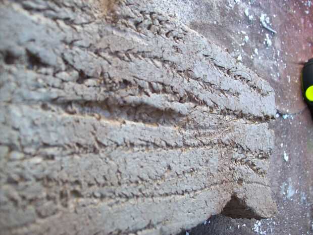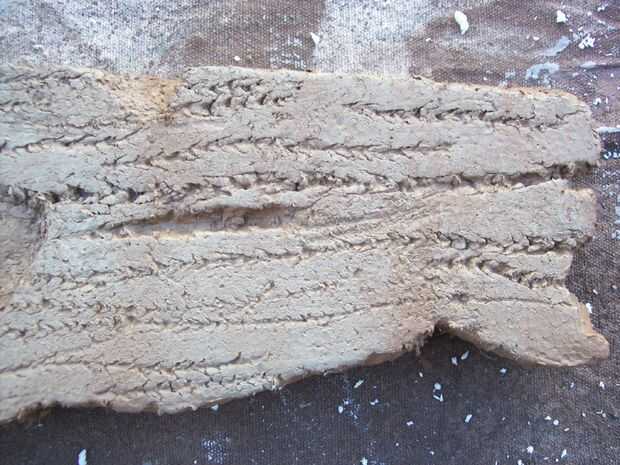Usted puede pintar las juntas con un cepillo, pero es muy importante que todas las muescas y grietas que hizo Obten color con la pintura marrón. Sugiero utilizar un pulverizador de pintura si tienes una.