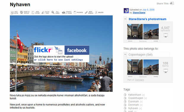 Hay varias aplicaciones de Facebook que podrás importar tu galería de Flickr a Facebook, pero fotos aparecen en una caja aparte en tu perfil. Ninguno de estos permite aplicaciones que subir fotos directamente a Facebook álbum de fotos, así que podría etiquetarlos de una manera que Facebook entiende, marca a tu amigo sobre ellos etc..