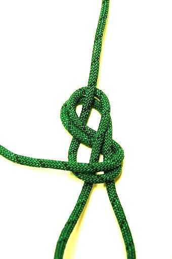2 - envolver la cola alrededor del extremo fijo hacia la derecha y hacia abajo a través del lazo adyacente. (Se muestra en la segunda foto)