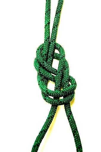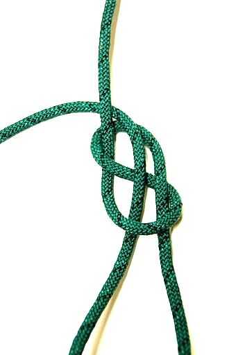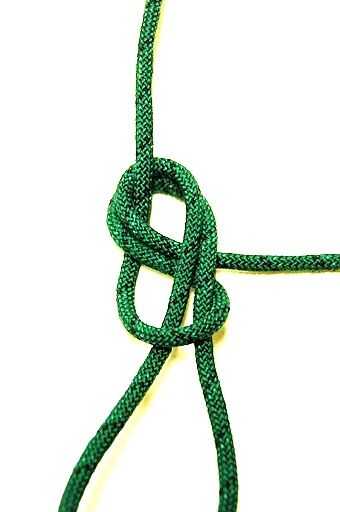 1 - venir forma debajo del nudo, subir la cola a través del lazo cercano y a la izquierda detrás el extremo fijo de la cuerda. (Se muestra en la primera foto)