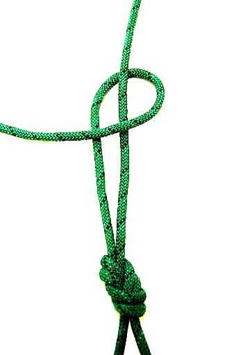 5 - para terminar el nudo, quieres tirar lentamente el extremo de la cola empujando suavemente la parte inferior del nudo de tapón hacia arriba. Si usted ha completado con éxito este nudo, debería verse algo como la imagen de la quinta. Idealmente, la cola sería un poco más corta que lo que he mostrado.