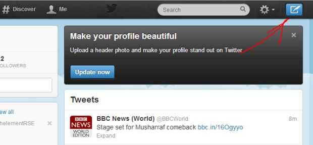 Una vez conectado, haga clic en el botón "Redactar nuevo Tweet" en la parte superior derecha de la pantalla.