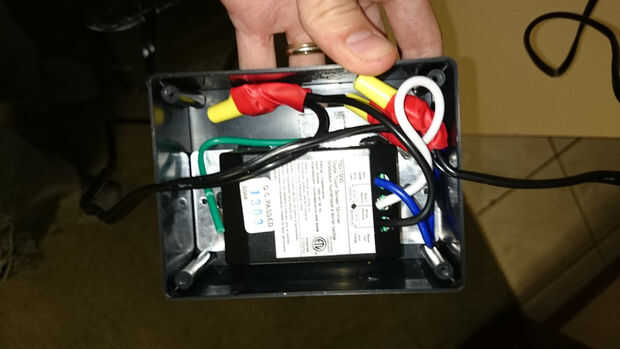 Puse algunos cinta aislante sobre la marettes porque los desconfío de, esto es opcional. LCD atenuador debe adaptarse perfectamente en la abertura del interruptor del temporizador Leviton anterior, utilicé algunos parte 2-5 minutos epoxy en cada una de las esquinas como un círculo debajo para sujetar firmemente en su lugar. Meta los cables en su cubierta vuelve a poner y poner en que los 4 tornillos de nuevo.