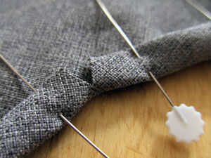 Como el agujero se redondea se va a necesitar utilizar tijeras y hacer pequeños cortes en cuanto a la más interna tiza marca en el ojo de buey. Esto es para que el dobladillo se puede dar vuelta detrás más cuidadosamente. PIN que todos como le va. Hacer que todo el corte ' V se dan vuelta sobre el lado anclado de la tela o se mostrará a través del otro lado y se debilite.