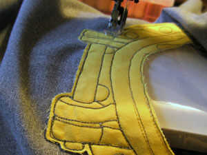 Comience a coser estos dos en su lugar. Usé la técnica de freemotion otra vez aquí siguiendo las líneas cosidas que había hecho anteriormente.