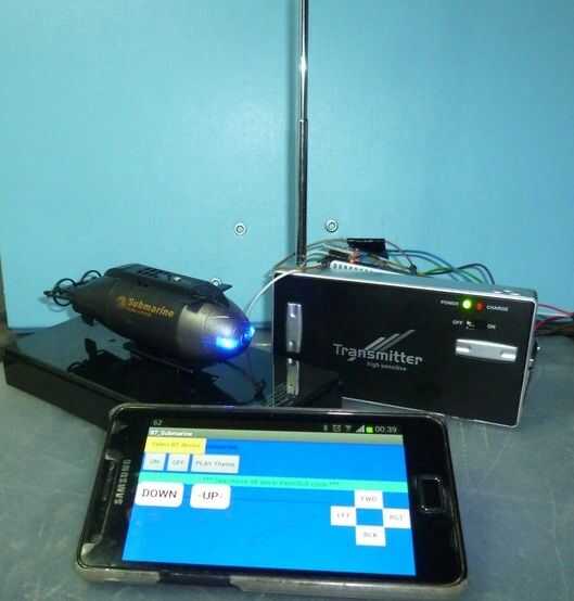 En este proyecto ya hackeado un submarino RC de la plataforma (49Hz) remoto controlado por la aplicación para Android! Todo el proyecto y cada parte de él pueden ser utilizados como una referencia a la variedad sin fin de proyectos (Arduino - BT, Android - Arduino, electrónica hacks, mandos a distancia...)