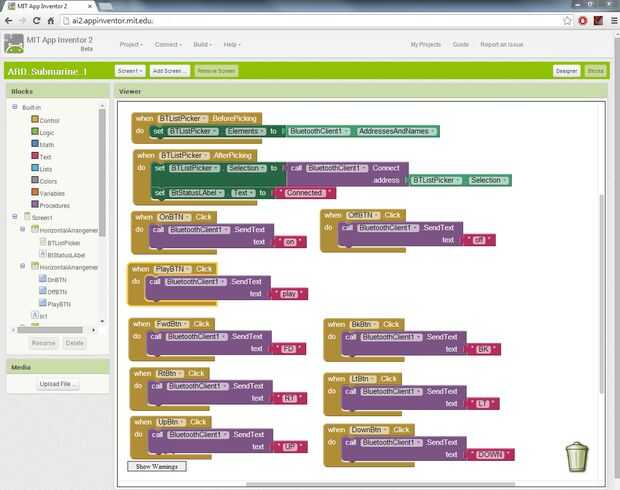La aplicación de Android fue escrita en MIT App Inventor (AppInventor de MIT), una herramienta fresca que le permiten hacer aplicaciones sin realmente saber programar - simplemente arrastrar y soltar bloques para hacer sus cosas: