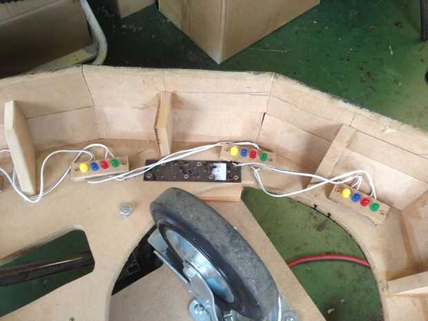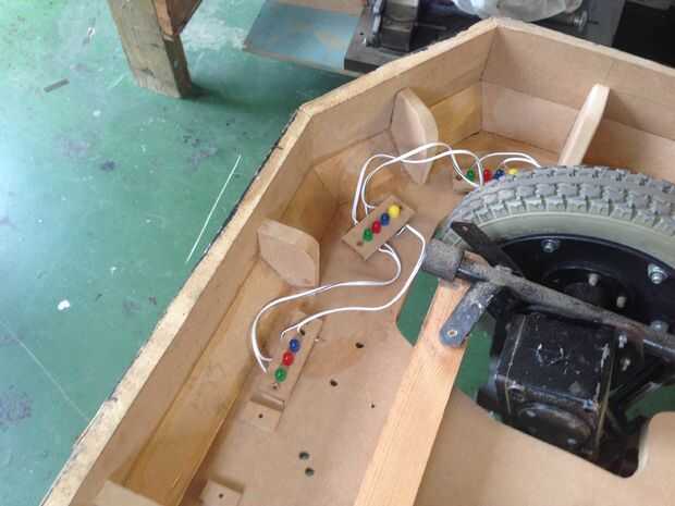 Utiliza a pequeños separadores para evitar el aplastamiento de los empalmes de la soldadura contra lo Dalek y atornillado a través de en la base de Dalek con tornillos de madera de 40mm.