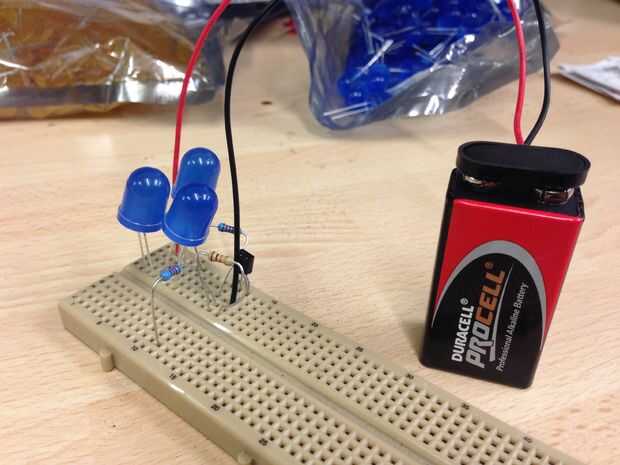 Otros LEDs quieren 20mA, rojo: (26V - 14.4V) / 0.02A = 580 ohmios, verde: (26V - 17.6V) / 0.02A = 420 ohms, azul: (26V - 23.2V) / 0.02A = 140 ohmios. (Estándar 1/4 W resistencias están muy bien para éstos.)