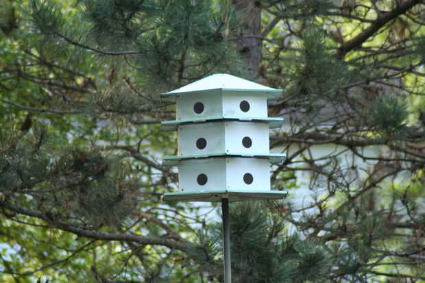 - Martin púrpura Condo: fue recibida como un regalo. No hay evidencia de anidación. Después de 15 años finalmente bajar a inspeccionar. Encuentran unas cuantas ramitas y ponerlo hacia arriba. Sirve más como decoración y un hito de nuestra línea de propiedad.