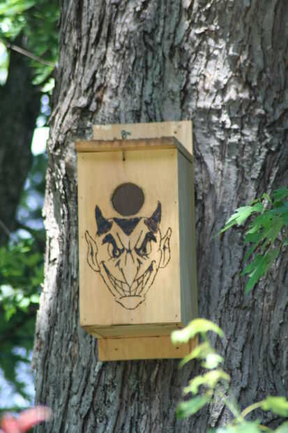 - Casa de Screech Owl: La novedad de este año. ¿Ninguna evidencia de anidación aún... tal vez el demonio miedo (mascota de la high School secundaria) está asustando fauna ausente? Pero se ve cool.