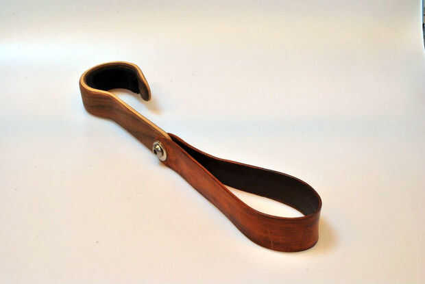 Cuando mi amiga Sarah se me acercaron sobre un proyecto de"metro" me ha decepcionado cuando no tenía nada que ver con bocadillos, pero, sin embargo, escuché su petición. Sarah es incapaz de alcanzar cómodamente la barra en un vagón del metro y muchas veces, durante hora de acometidas que se toman todos de las correas. Seis pies de altura, nunca he experimentado este problema pero me imagino la frustración. Juntos desarrollamos metro gancho. El gancho de metro es un accesorio de transporte de personal, de moda de cuero natural y madera nacional.