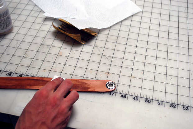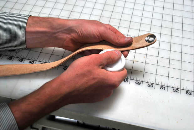 He usado de Jessyratfink instructable en pulimento para ayuda con el acabado de los bordes de mi correa de cuero. Sugerimos que lea las notas de Jessy en el tema, pero en definitiva, utilizar algunos Goma tragacanto para hacer el borde de tu piel un poco pegajosa y un impermeable para alisar hacia fuera. Este proceso toma un poco de tiempo pero vale la pena el tiempo. También usé algún tinte de cuero para oscurecer la correa y que coincida con la madera un poco más.