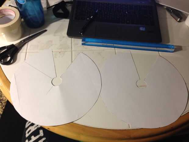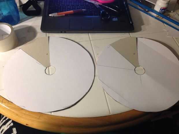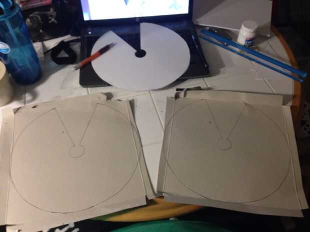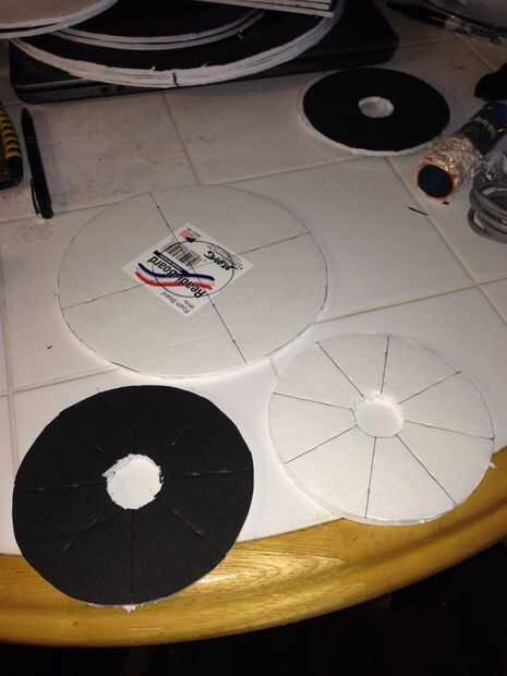 8. trazar dos 4 pulgadas ¾ los círculos con un círculo de pulgadas en el centro de la espuma del tablero y recortarlo