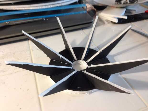 9. Pegue las piezas de ángulo a los círculos con espaciamiento uniforme, y luego pegarlos en el cono.