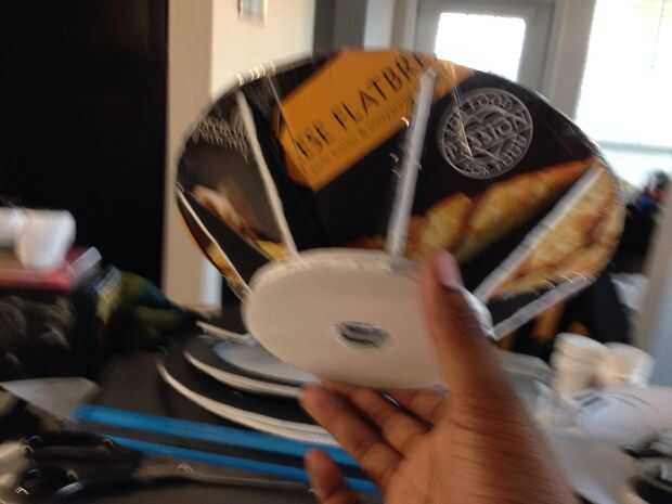 5. pega los dos círculos juntos dejando un excedente de la caída