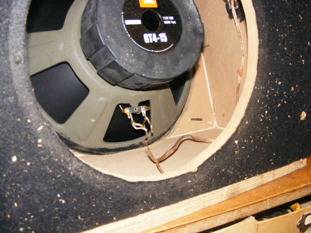 Este es un proyecto de 15 minutos que lanzaron juntos en 11:00 pm CSTencontró una vieja radio gabinete zenith en el callejón hace un año, pelaron el funcionamiento interno todo excepto 1 subwoofer de 16 pulgadas, 1 rango medio cuerno de 7 pulgadas y