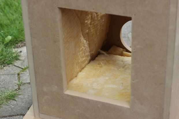 Ahora es el momento para humedecer la caja con lana de vidrio. Esto hará que el orador piensa que el cuadro es más grande que es como producir un mejor sonido.