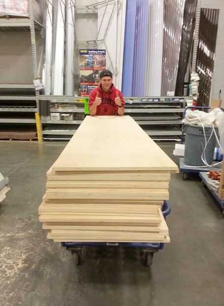 madera contrachapada de 4'x 8' (3/4" de espesor) = qt 12 = utilizado para las paredes.