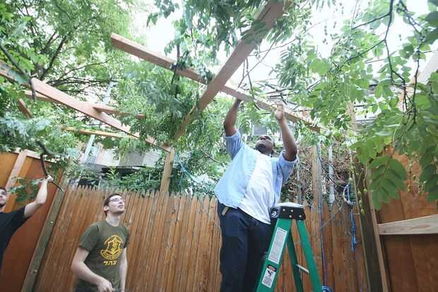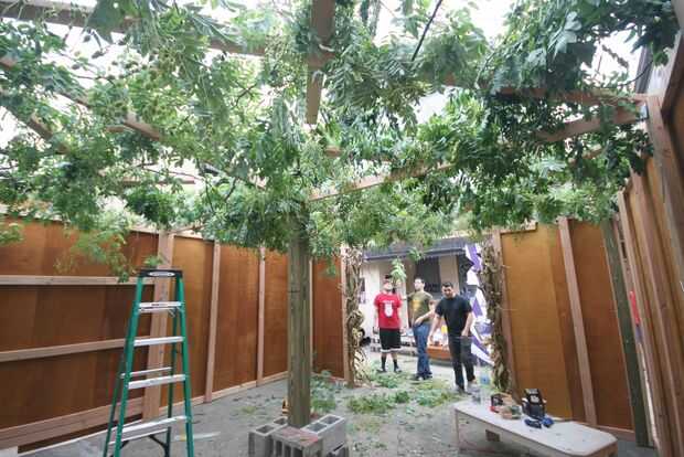 Por suerte para nosotros el árbol en nuestro patio trasero tenía suficientes sucursales para cubrir nuestro techo de 256 pies cuadrados.