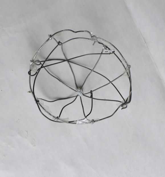 Con la ayuda de la bola forma dos media esfera de alambre de hierro. Puede utilizar alguna cinta o uso algunos muy fina de hierro cable para mantener la plancha en lugar.