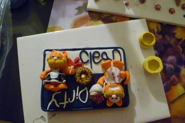 Tomar algunos pintura acrílica negro y una finas rayas de pincel y pintura en los gatos.