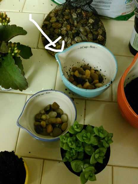 Agregar piedras o guijarros, esto ayudará con el drenaje del agua. Si tu contenedor no tiene agujeros en la parte inferior y no perforar o añadir rocas de agujeros o una fina capa mantendrá agua de empapar el suelo. Esto también significa que usted no necesita regar tan a menudo.