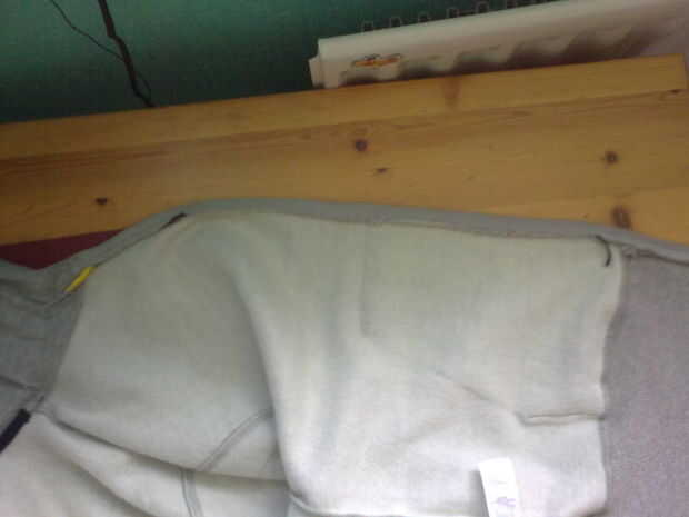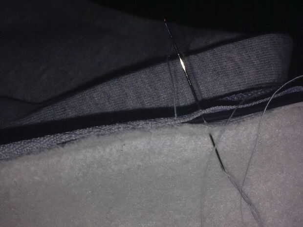 Simplemente apriete entre la tela y la cremallera junto con el cable (en la parte superior cerca de la campana) y coser a lo largo de hasta del agujero inferior y su acabado.