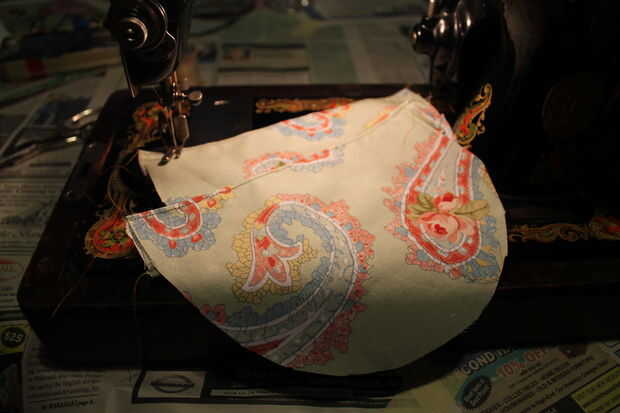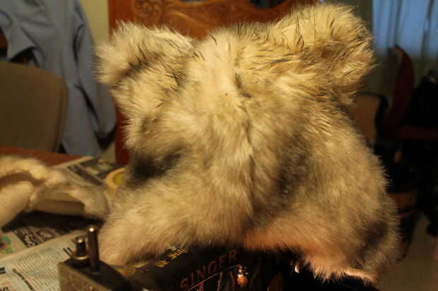 Cortar orejas de peluche, y en parte de su relleno, empujar hasta que se ven bien y agregarlos al sombrero. Tuve a mano coser las orejas en porque mi maquinita de coser solo no cosa que muchas capas gruesas.