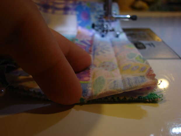 Prender a los bordes de la camiseta a partir de la parte posterior. Al llegar a un pliegue de esquina sobre su trabajo para formar un triángulo y luego doblar nuevamente. así que tienes una especie de aleta. imágenes 3 y 4 de esta parte no me gusta la costura para mostrar así que abrir el enlace y utilice la primera costura de doble guía. Coser a la camiseta.