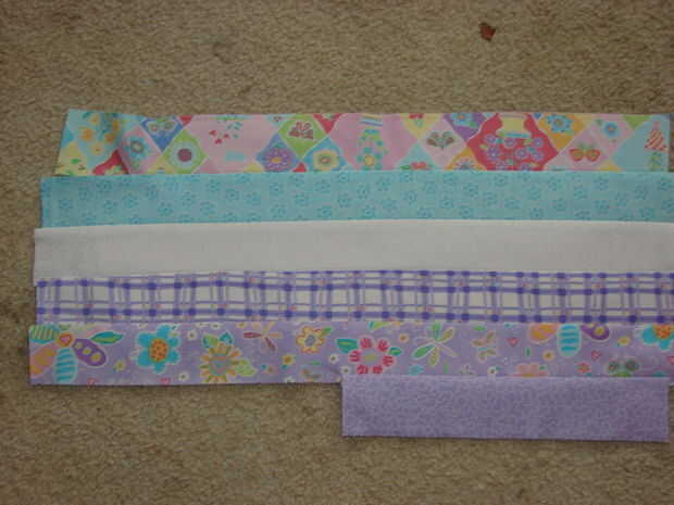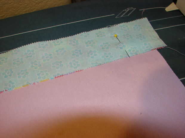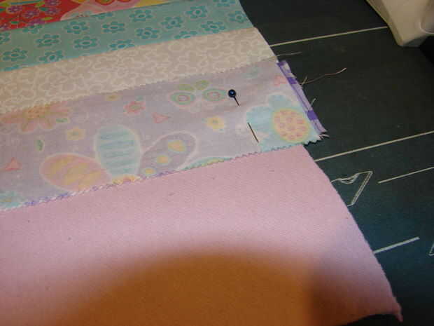 Ahora es el momento para las piezas delanteras. Estos que lo hice un poco diferente. Empecé en el borde frontal que había cortado antes. Partir de este punto en vez de desde el centro. El resto de las piezas como para las fundas de edredón. Sarga o corte el exceso de material.