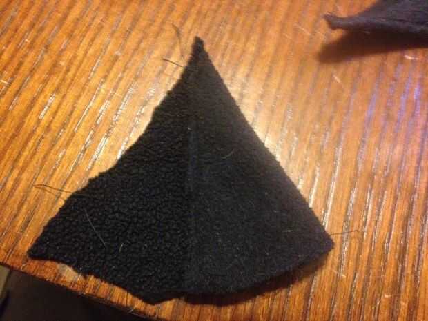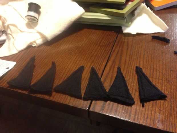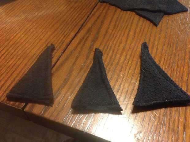 Para los picos de antebrazo, tres para cada lado necesita. Estos se pueden cortar de la tela sin cercado. Doble un lado y lo de la puntada. Doblar el otro lado sobre esta parte por lo que la parte inacabada coincide con el pliegue de la parte anterior. Añadir una puntada aquí también. Una vez que tengas eso, coser una puntada en la parte inferior y repita cinco veces más.