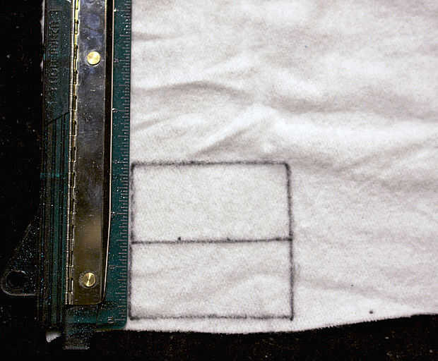 1. cerca de un borde del material, con la regla dibuja un ½ "x 1 3 ½" rectángulo, asegurándose de dejar 1 ½" de material en dos lados del rectángulo (ver cuadro 1).