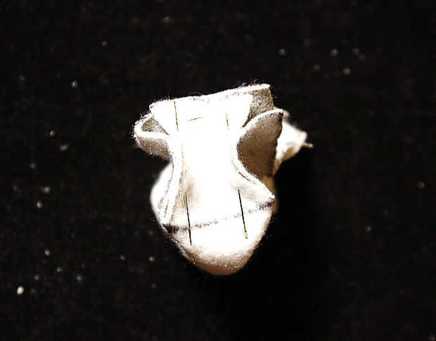 Utilice los rectángulos de dos lado bases, como las líneas para formar la forma de 3 dimensiones. PIN los lados alrededor de cada base. (Ver cuadro 1 y cuadro notas para la numeración de los lados para conectar). Lado del PIN 1 a 1, parte 1:58, lado 2:57 y lado 3:56. Perno lateral A A B a B y deje de lados C abierta.