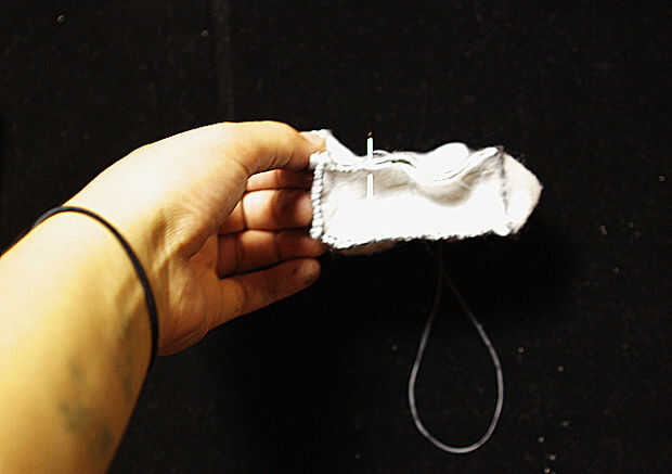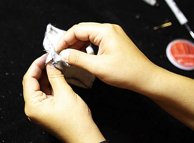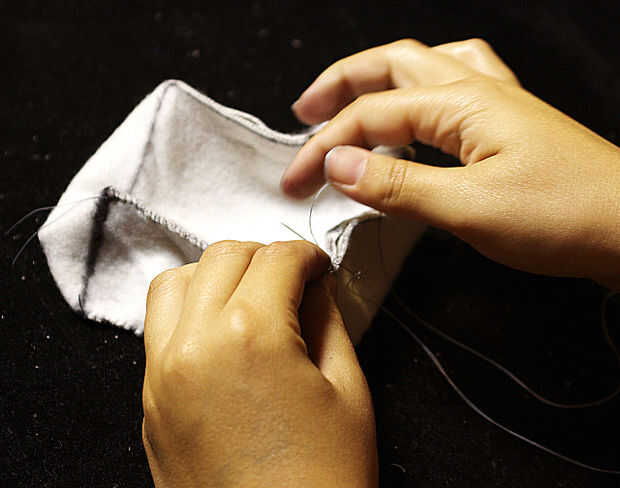 Desde una de las esquinas. Primero introduzca la aguja en una esquina y tire de la cadena aunque, próximo giro la aguja detrás alrededor e insértelo a través de la tela en el mismo lado que comenzó en. Seguir haciendo esto hasta que cada lado excepto lado C se cose para arriba. No te preocupes si te quedas sin hilo de coser, atar en un nudo y empezar un nuevo hilo y comenzar a coser otra vez.