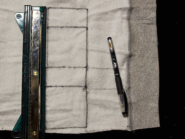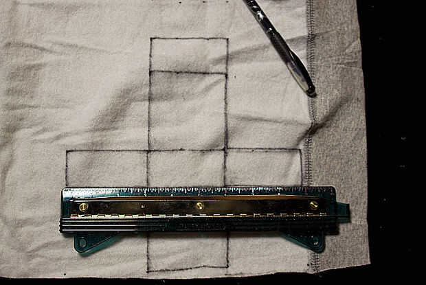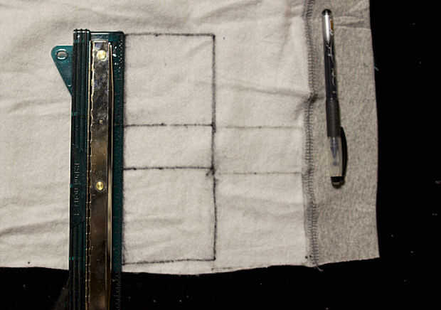 1. cerca de un borde del material, con su regla, dibujar un cuadrado 3 x 3 pulg., asegurándose de dejar 3" de material de dos lados de la Plaza (ver cuadro 1).