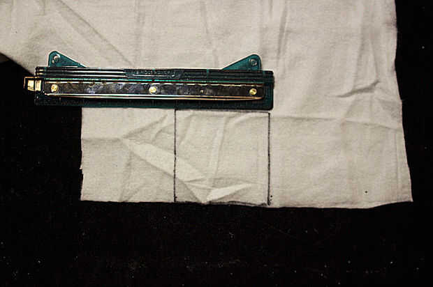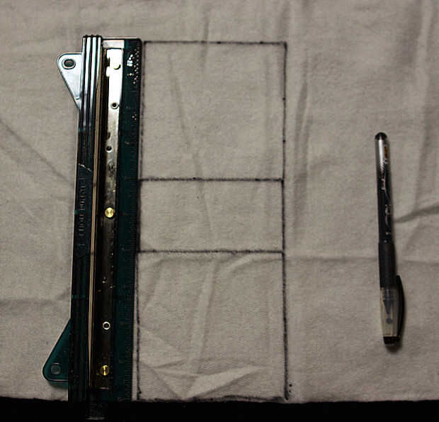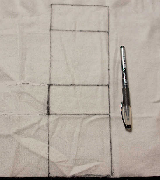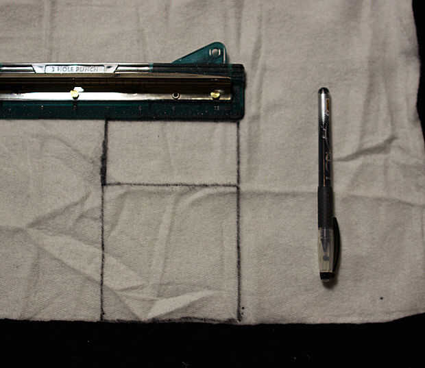 1. cerca de otro borde del material, con una regla dibuja un cuadrado 4 "x 4", asegurándose de dejar 4" de material en ambos lados de la Plaza (ver la primera imagen).