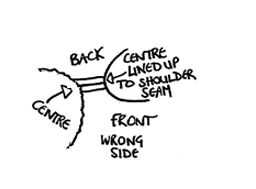 Sujete la parte superior de la manga al cuerpo principal con la central de la costura del hombro.