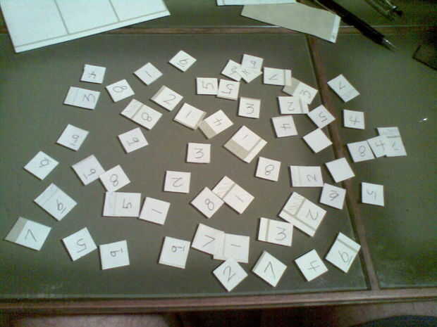 3. hacer 6 sets de pegatinas con 1,2,3,4,5,6,7,8,9 en ellas (Sudoku es 1-9.. correcto?)