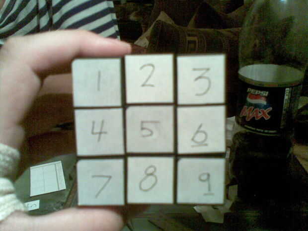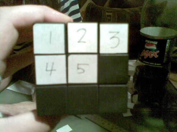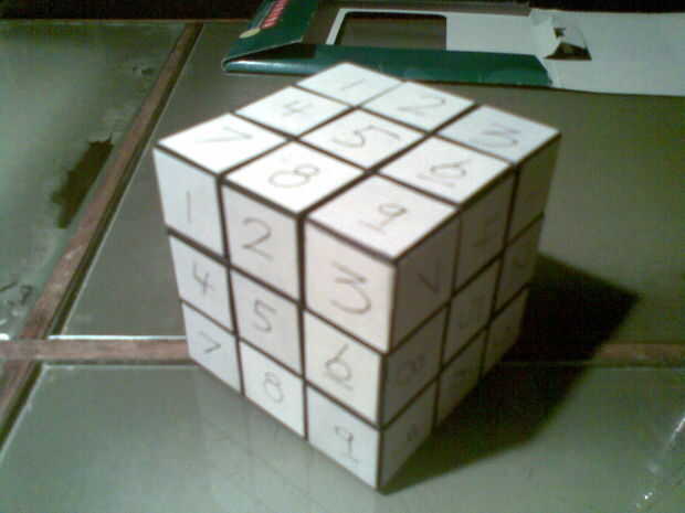 Un conjunto de pegatinas de números sudoku del palillo a cada lado del cubo de Rubik pelados