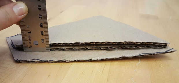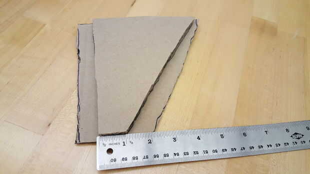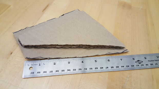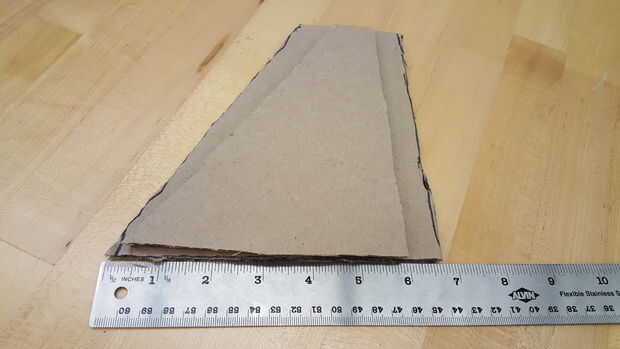 Hay mucha libertad para la interpretación en una maqueta, experimentar tan lejos! Comencé trazando la forma básica de mi marco de la bicicleta sobre un cartón, luego cortar esto e iterativamente trazado y cortado hasta que me dieron una forma que razonablemente adecuado mi estética "simplemente speedy" deseado. Que el prototipo dos métodos de localización de fotograma diferente posible, un recorte de dos y una pieza triangular. La pieza triangular fue mucho más fácil de tamaño y más sencillo cortar y construir, así que seguí con ese diseño. Determiné que un espesor de aproximadamente 1/4" para la pieza interior trabajado mejor para mi bicicleta. He incluido mis medidas aproximadas de las imágenes de arriba.