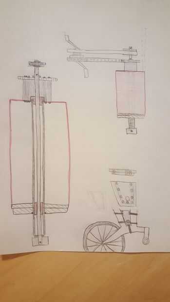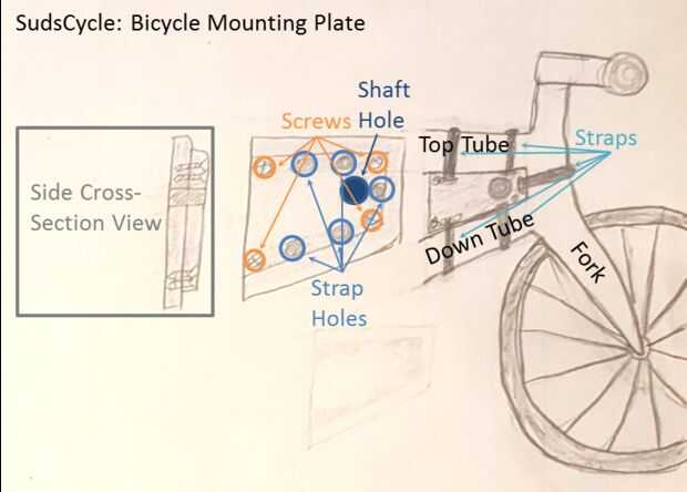 Esto es un paso y la forma más sencilla de calcular las medidas de su bicicleta. Para este diseño (como se muestra en el diagrama), instale el cubo a la bicicleta con abrazaderas un pedazo plano de madera alrededor del tubo superior y abajo el tubo de la moto justo detrás de la horquilla. Esto es celebrado en lugar por el frente y tiras de tela superior y generalmente situado en una parte elevada de la madera en el interior de la placa.